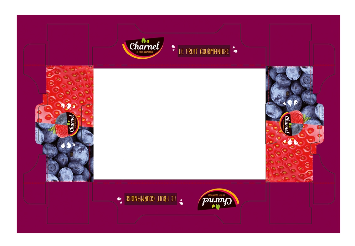 Un packaging colis qui affirme le positionnement premium de Charnel sur le segment fraises en grande distribution. La complémentarité entre le prune de la charte et le rouge intense du fruit crée un ensemble cohérent, distinctif et mémorisable. La mise en valeur de la Gariguette de Plougastel renforce l’identité de sélection exigeante qui définit Charnel au sein du Réseau Le Saint, tandis que le suivi de fabrication rigoureux garantit un rendu fidèle à l’intention créative de bout en bout.
