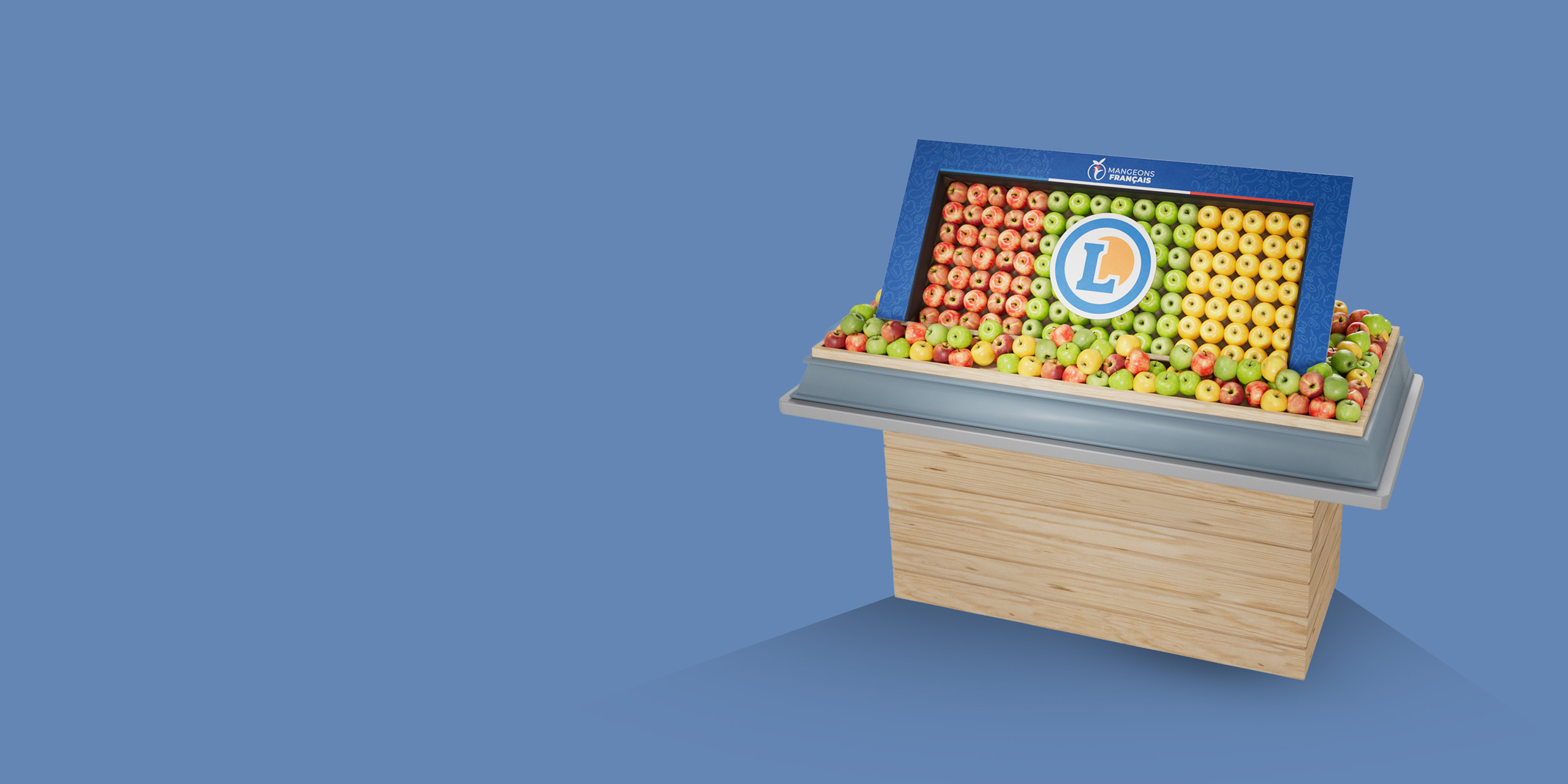 • Un soin particulier a été apporté à l’harmonisation des couleurs et à la modélisation réaliste des fruits, afin de traduire l’identité propre à chaque marque : Jardin Créole met en avant la richesse des fruits exotiques, Mangeons Français valorise les produits issus des vergers français, et Charnel, marque premium du réseau, s’exprime à travers une sélection de fruits haut de gamme.